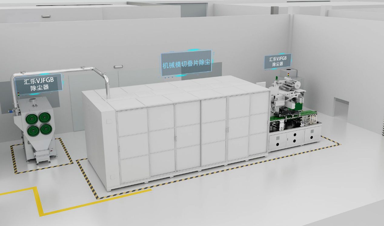 疊片機在進行對電池芯的疊片時,會產生比較多的細微粉塵在電池芯的表面。影響電池芯的質量以及電池的性能。在疊片工序工程產生的粉塵以及前端工序殘留粉塵處理,可選擇我司VJGFB系列除塵器。