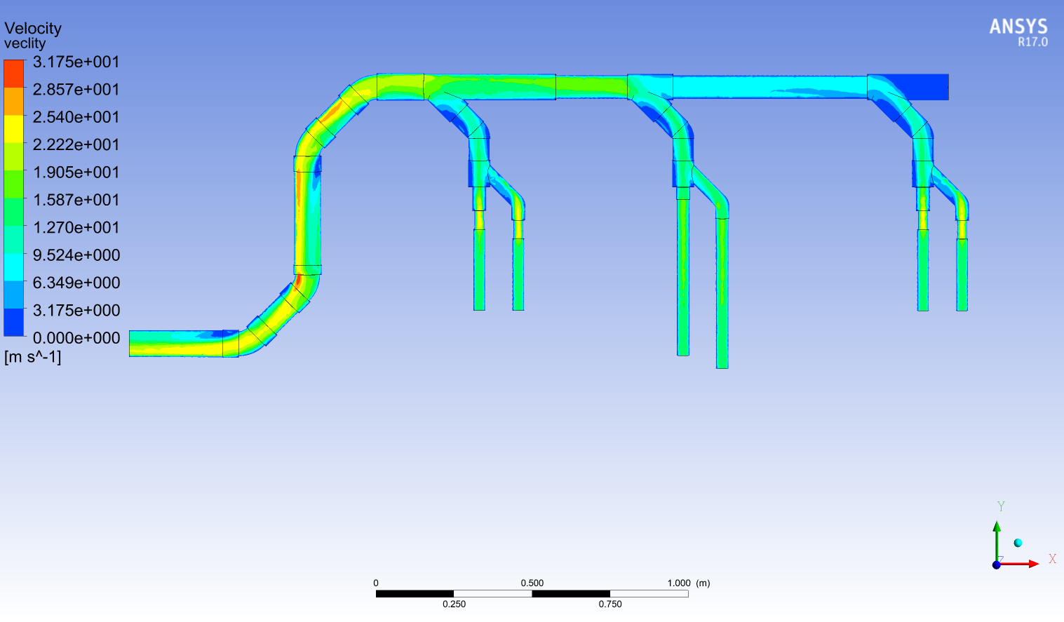 二、管道中間截面速度云圖