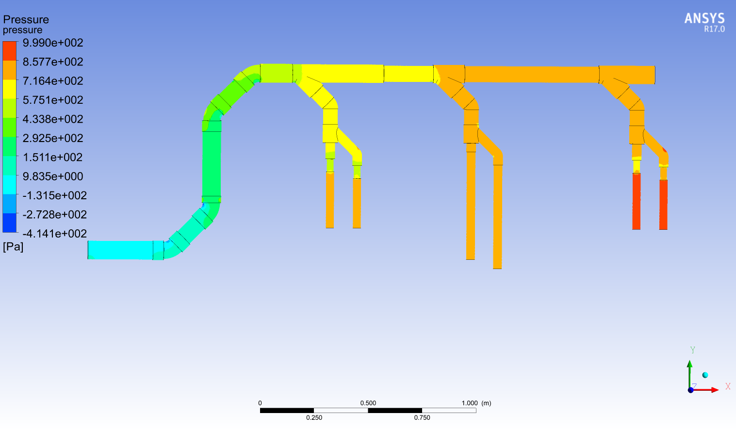 三、管道中間截面壓力云圖