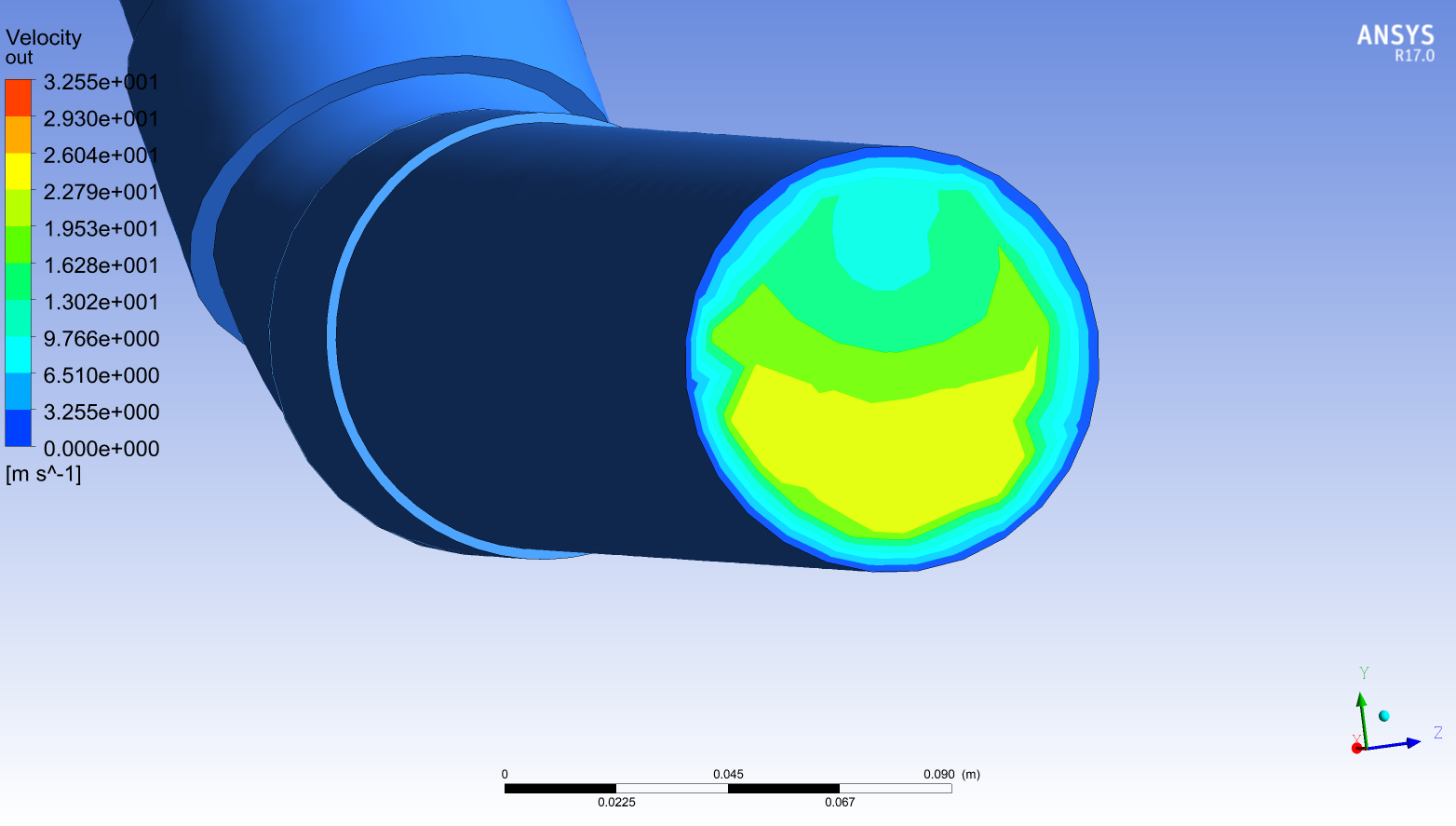 四、管道出口截面速度云圖