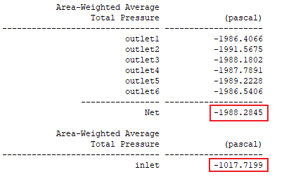 這里使用進出口平均壓強差來定性判斷改進前后系統能耗變化情況。改進前進出口壓降如圖3.2所示,進口平均壓強為-1017.7199Pa,出口平均壓強為-1988.2845Pa,系統壓降為970.5646Pa