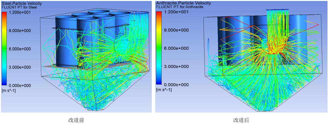 圖3.5 改進前后顆粒跡線圖